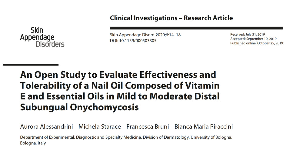 1. Een open studie om de effectiviteit en verdraagbaarheid van een nagelolie samengesteld uit essentiële oliën in milde tot matige distale subunguale onychomycose te evalueren: